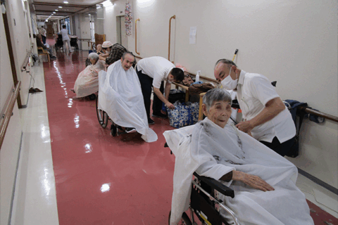 ●毎月第4月曜日にスマイルさんによる散髪があります。 顔剃りや眉毛も整えてもらい...