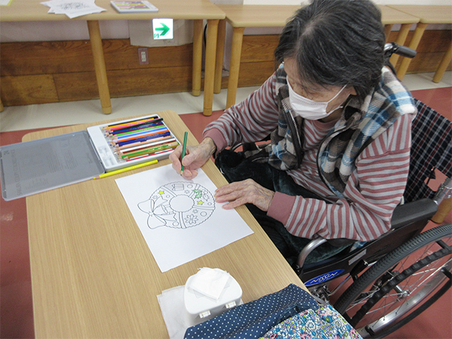 余暇活動の時間では、パズル、塗り絵、生け花、洗濯物たたみと、それぞれの時間を過ごされています。