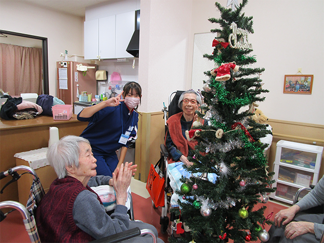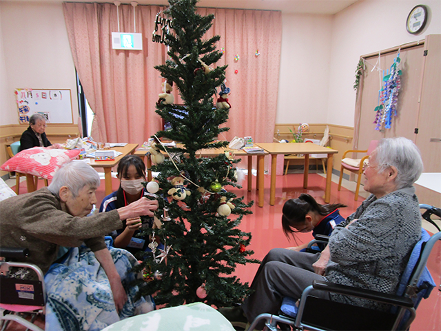 入浴後にドライヤーをかけてもらったり、一緒にクリスマスツリーの飾りつけをしたりと、いつも以上に笑顔が見られていました。
